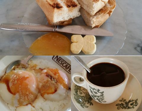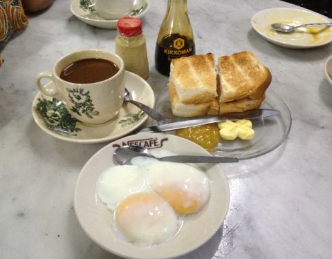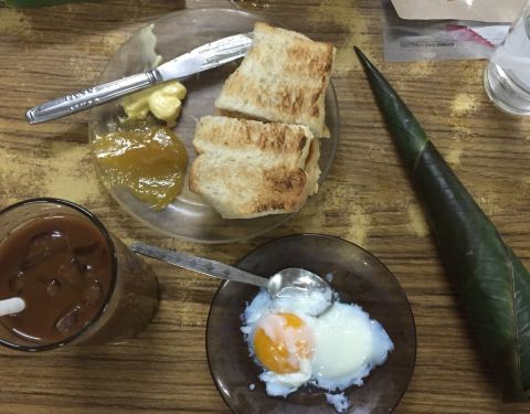 People are queuing for table. A must have here are... half boiled eggs and toast.