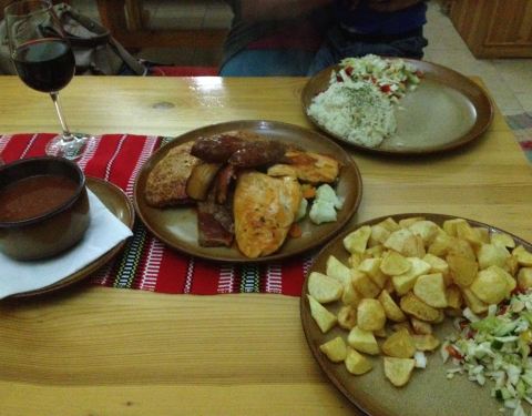 Výborné halušky. Mix gril také nebyl k zahození, ale nedalo se to sníst... Obrovské porce!