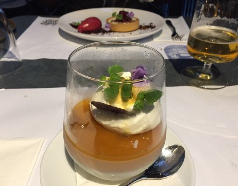 距离多瑙河游船码头挺近的,游玩后过去吃饭很便利。餐厅是法国菜,上菜速度不快,摆盘很漂亮,食品也很精致可口,厨房是开放式的,可以看到烹饪过程。猪肉意外得入味,符合中国人的口味。另外,有个菜用了整颗青...