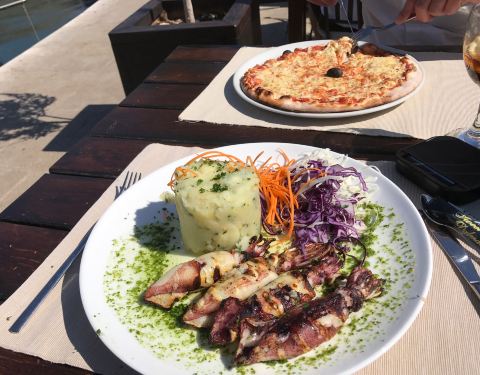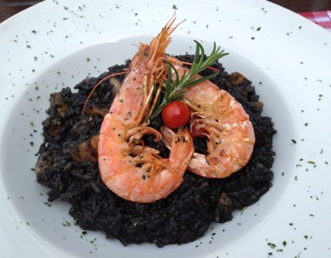 Great view, great service, and my black risotto scampi was delicious.