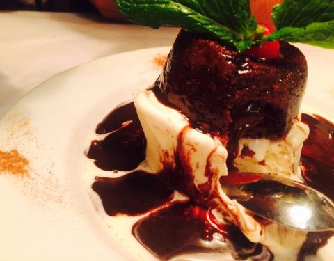 Postree increíble!! Volcán de chocolate horneado en el momento y helado de crema debajo