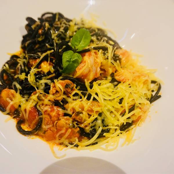 服务员小弟弟会英语,服务真的好,菜品也好看好吃。整体环境很棒!奶油面意外的比墨鱼面还好吃