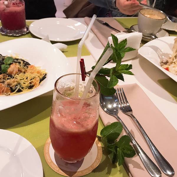 但是我回头想,博物馆、广场,商场都在一个地方,就像我们的中心商区十字路口那么点地方,却要集合三次,上车下车开个100米,好麻烦。为什么不直接给半天自由活动呢?这就是跟团的弊端吧整体环境很棒!服务员小弟弟会英语,服务真的好,菜品也好看好吃奶油面意外的比墨鱼面还好吃敲美的!程程一直想喝的鸡尾酒!她在最后一天喝到了!墨鱼面餐厅上菜已经算是很快了,我们四个人整顿下来就15分钟吃完吧,两个面三个饮料人均50左右。最好笑的是,可能以为我们不要找零,钱拿走就没了消息,结果我们在等找零,一百八呢,最后厚脸皮地去要了找零哈哈哈哈哈哈