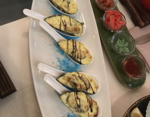 点了很多好吃的,烤牛舌,墨鱼面,烤生蚝,鲑鱼排,帝王蟹,食材都非常新鲜,处理的也很干净。厨师手艺不错,摆盘也很漂亮,瞬间激发食欲。