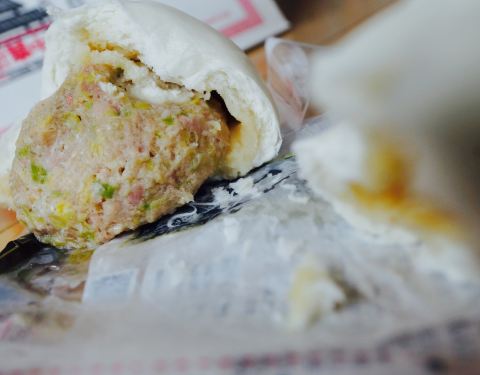 人气爆棚的特大肉包店,肉包馅足味美。
