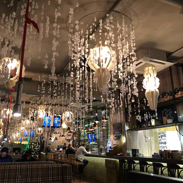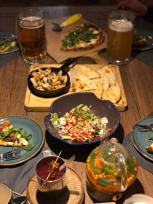1.大众点评上摩尔曼斯克口味排名第二。走了20分钟,特意找过来的,口味还不错,中国胃能接受。要了烤扇贝,蟹肉沙拉,烤肉拼盘,红菜汤,一块甜点,一杯啤酒。只能片面的从上述菜出发评一评。蟹肉沙拉的蟹肉有点碎,原材料一般。烤扇贝好吃,扇贝个大味美。红菜汤里面很多牛肉粒,红菜有一种比较面的口感,不是脆生的,这点我喜欢。烤肉拼盘里面貌似有牛肉,鹿肉,猪五花,最好吃的是猪五花,牛肉和鹿肉到底哪个是哪个没分出来,味道和口感都接近,说明鹿肉不骚,牛肉也不嫩,但是都不香,可以吃,但是没牛排好吃。甜点挺好的,不是传说的那么甜,和国内差不多。啤酒比超市的好喝。2.环境还行吧,我们去的时候,还没什么人,挺安静,快吃完的时候,才发现人特别多了已经,然后就比较吵闹一些。3.服务嘛,正常水平。