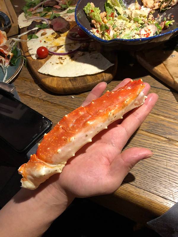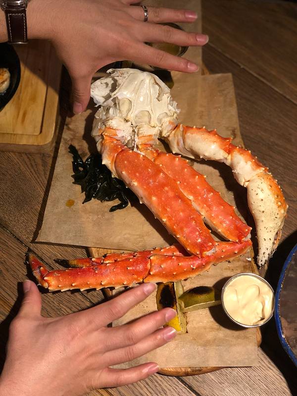 看了推荐,来吃帝王蟹,我们吃的只是帝王蟹的蟹腿,蟹腿肉真香啊!但是点的鹿肉很腥,吃不习惯。🍻
