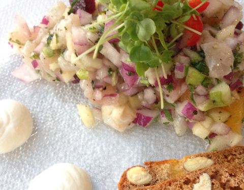 Fresh starters like Ceviche and Carpaccio, trendy decor and good service