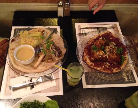 Amazing hummus and meat great lamb great Iraqi pita fun fun fun