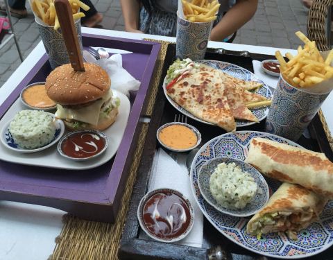 Cozy and nice burger joint in the middle of Medina. It’s in a small and not so crowded street next to the souk. staff friendly and the veggie burgers are great. Try the quesadilla. Burger 35dhm