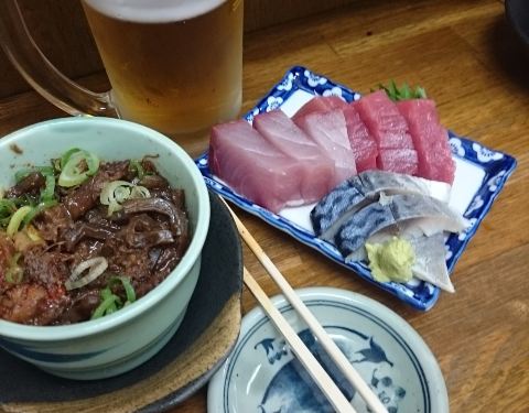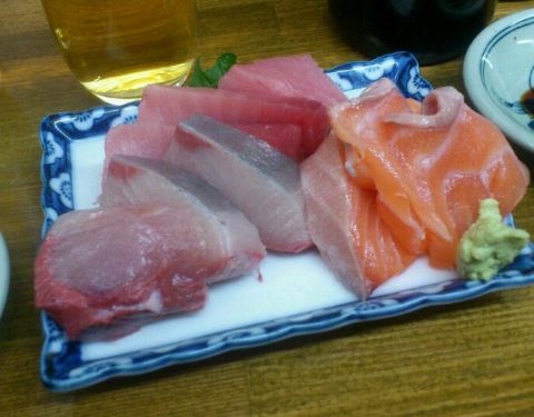 毎朝大将が中央市場で仕入れる新鮮ネタの造りがまずオススメd( ̄  ̄)因みに写真ははまち造りで¥250