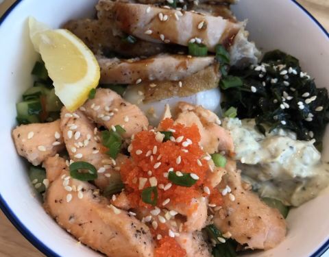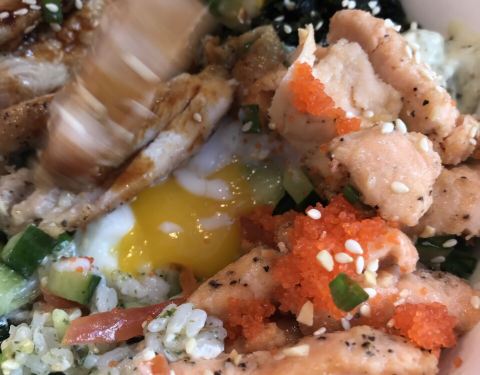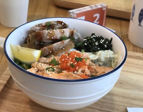 专门吃寿司和刺身的店,价格还蛮接地气的,不是很贵。游客也不是很多菜单,是英文和日本的,点了散寿司饭,米饭软软的,也是有醋的味道。