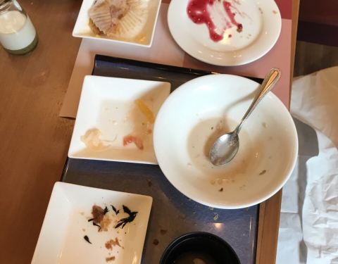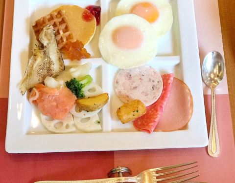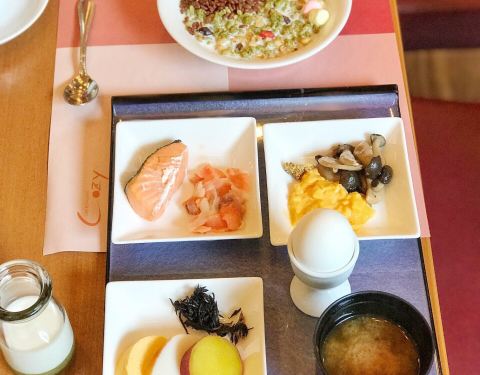 总评: 此篇点评代表的是酒店的自助早餐水平,跟午晚餐自助无关。 餐厅其实不算小,但是大清早7点去吃早餐,竟然等位30分钟,也是醉了。 关键是里面还有空位啊,为什么不让客人进去呢? 还好,味道不算差,品种虽然不多,但是吃饱足够,服务还行吧。 如果不着急,建议订含早餐的房间,毕竟日本的餐厅都开业比较晚啊。 评分:70分 性价比:❤❤❤ 原本就是为了早点吃完早餐,早点出门赶路去轻井泽,哪晓得等位都浪费了我30分钟,真的是如坐针毡呀。 餐厅的餐盘分为两种,一种是自带分区一格一格的常规餐盘,另外一种是有粗糙吸附功能的日式餐盘,可以将各种小盘子放在餐盘上,端着也不会随意滑动。 可以把只喜欢的菜品,一小碟小碟的放在小盘里,然后用托盘一起端到桌上,看起来精致,吃起来也比较方便、 菜品总体来说味道还可以。喜欢切得很厚实的烟熏三文鱼块儿,肉很嫩很香,咸度也刚好,相较于刺身的吃法,我更爱这种。 水果比较少,葡萄很小颗,荔枝也不新鲜,其他水果我没尝试。 日本的蛋类食物都做得很好,温泉溏心蛋都很好吃,特别嫩滑。 点了一份现点现做的班尼迪克蛋,竟然还有葱段在上面,造型也比较粗糙,还好蛋糖心部分很性感。 蛋糕和面包就不写了,太差!看起来就不精致,品种虽然齐全,但是没有一款好吃的。 相对来说日式的一些传统料理小食都还不错,比如味增汤就挺好喝的。 玉子烧也还不错。 餐厅自制的酸奶不行,芒果和抹茶味的都不好喝。 燕麦的品种不多,但是有棉花糖呢,放在温热的燕麦片里,吃起来蛮特别的。 恩。反正各种各样吃一些,最后都很饱了。关键是在日本吃自助都不敢浪费的,生怕被其他人谴责,所以不管好吃否,拿到桌上的食物都吃得很干净,这能不饱吗? 不过呢,在日本吃早餐去一家有座位的便利店也是很不错的选择,好吃还快捷也实惠。