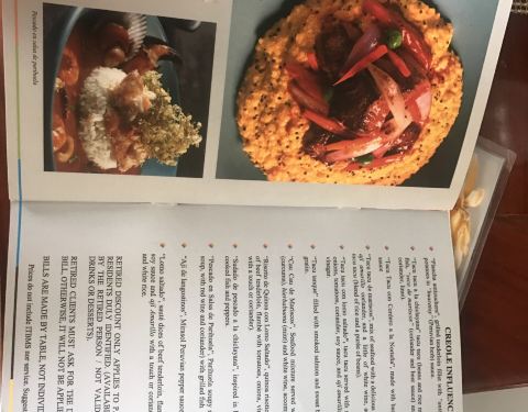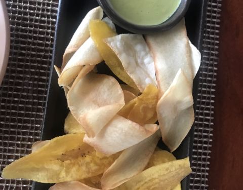 来巴拿马第一餐,酒店前台热心推荐的餐馆,说海鲜很正宗,当地很受欢迎,中午12点开始营业,从喜来登酒店打车7美金到。有说英语的服务员, 看图片也可以。 一道菜可以点一份分餐。只是分餐就不如图片漂亮。有赠送的甜薯薯片,绿色酱料是巴拿马比较特色的。菜品味道尤其是汤类很足,服务员热情。餐后还帮忙叫出租车。