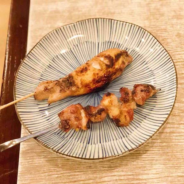 #2018.03 九州天空城之福冈# 这家店就在福冈JR站后面的筑紫口,出站走5分钟即到。 晚上9点左右店里坐得满满的。路过窗子看到,心想人气这么旺一定很好吃。然而事实打脸打得很疼。 店里有中文菜单,所以点菜很方便。 点了几款推荐的串烧。无一例外的都是烤得干巴巴的。默默地望着在做串烤的厨师大叔,实在搞不懂为啥统统都烤得有点焦,还不是那种有汁水的微焦。金针菇的水分也全部烤没了,猪软骨硬的咬不动。。 唯一好吃的大概就是烤玉米了。虽然刷的烧烤汁实在接受无能,但玉米本身既甜又多汁,所以无论怎样都好吃。 鲸鱼肉上来的时候还以为是送的小菜,吃了两口才觉得不对。口感脆脆的很有嚼劲,加入的芥末酱带来细微的辛辣感,这口感很奇妙,不难吃,但也不能说美味。 沙瓦也不错喝,然而这个好像和厨师也没什么关系。