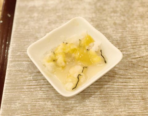 口感脆脆的很有嚼劲,加入的芥末酱带来细微的辛辣感,这口感很奇妙,不难吃,但也不能说美味