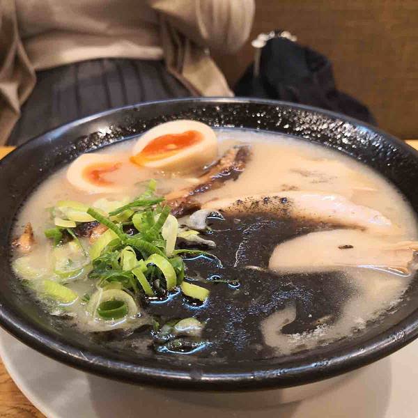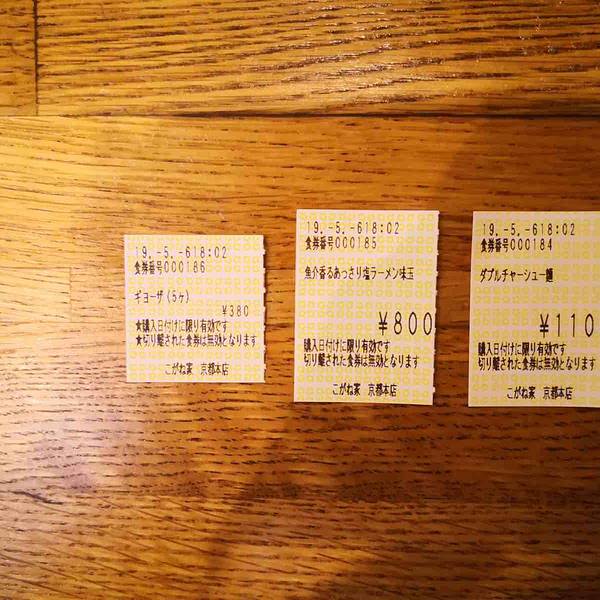 这家店在京都站南侧的唐吉柯德地下一层,位置挺好。 用餐环境比较局促,桌子比较小,店内空间不大,但用餐的人很多。 进门后有一台自助点餐机,左边用中文写着使用方法,先投钱再点餐,落座后服务员会很快上一杯冰水。 双份叉烧黑拉面是店内招牌,除了普通拉面的叉烧外,另外增加了一整块叉烧,分量挺多的,黑色的汤可能加了墨鱼汁吧,没有任何怪味。面条软硬适度,汤很咸。 豚肉拉面比较清淡,去拉面店点一碗一定不会出错,汤还是偏咸。 饺子还不错,馅的味道比较合适,蘸醋和辣油,顺便提一句辣油不如七味粉辣。