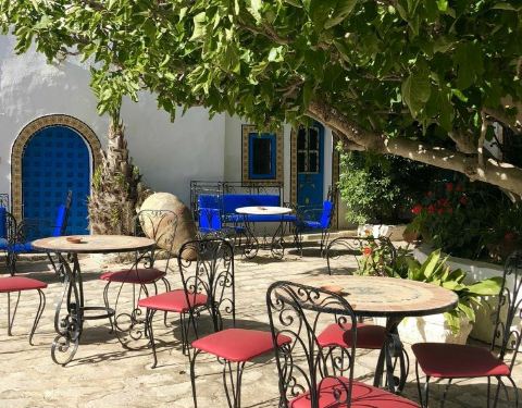 这是突尼斯一家传统的咖啡餐厅,这里的突尼斯薄荷咖啡是最正宗的那种。咖啡馆有点像霍比特人住的小屋,蓝色的拱门建筑,内部庭院宽敞舒适,有着很好的就餐环境,很值得来尝尝。