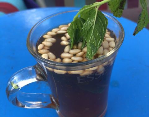 这家餐厅是我在突尼斯光顾的最有特点的一家餐厅。两个餐厅都是以蓝白色为主色调,感觉有着浓浓的海洋气息。而这里的菜也都出自自然,这里的白果薄荷茶,加上红糖味道非常的清爽甘甜,十分的爽口好喝。