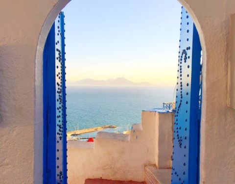 突尼斯蓝白小镇Sidi Bou Said,临悬崖而建,山顶上被列入世界文化遗产名录的露天“阶梯咖啡馆” (Cafe de Delices)是最好的观景台。悠闲地坐在长椅上,边欣赏地中海风光,边喝杯浓郁的阿拉伯咖啡,或是品尝特色的薄荷松子茶,好好享受静谧的美好时光…