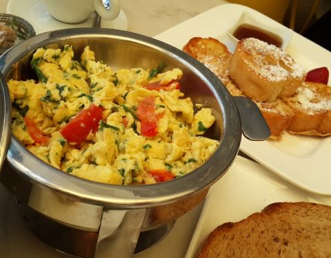 Order the scrambled eggs with smoked salmon and hollandaise sauce