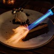 就餐期间还有充满非洲风情的打鼓表演。服务员也十分热情有趣,我们请他帮我们拍照,他一直找不同角度给我们不停拍。饭后甜品,火焰焦糖蛋糕,焦糖是现场点燃做的,很酷炫。吃完饭在Dubai Mall逛了一会儿,看到了艺术感十足的水帘和一群小黄鸭,我们便回酒店休息了。