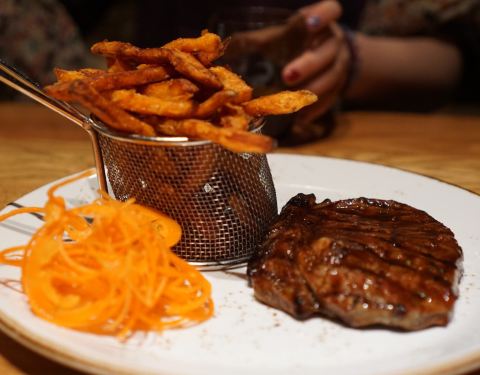 - Typical African restaurant, wagyu steak was ord...