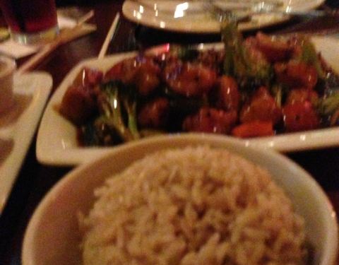 Shrimps dynamite , brown rice & sesame chicken ...