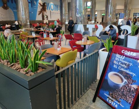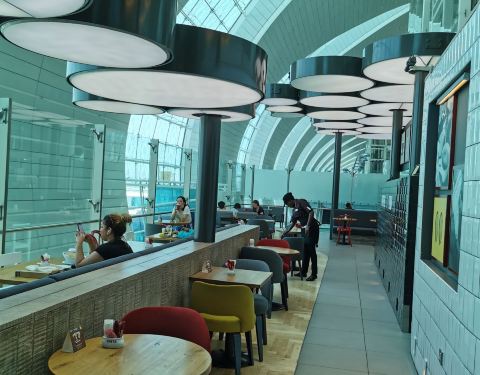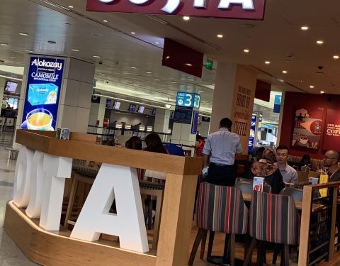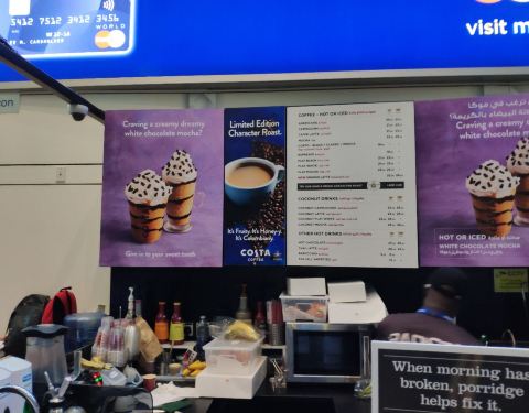 Costa在迪拜开了很多家,这家在迪拜机场内,店面较大,有座位可以用餐,也有沙发椅子边上可充电...