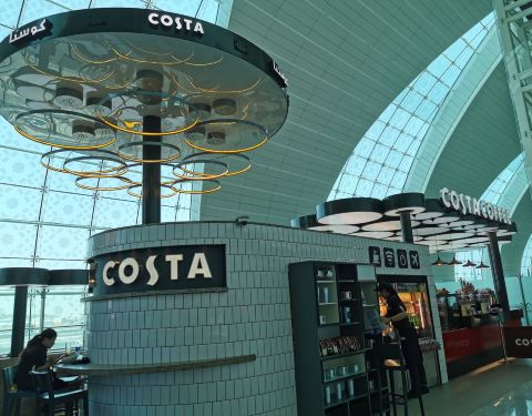 Costa在迪拜开了很多家,这家在迪拜机场内,店面较大,有座位可以用餐,也有沙发椅子边上可充电,咖啡和国内差不多,价格和国内差不多。