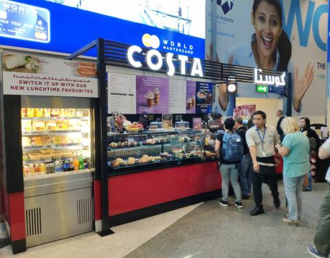 去奥地利在迪拜转机,到达迪拜机场,首选印象最深的说这家咖啡店--costa(机场店)~ [环境]其实环境一般的,是全开方式的咖啡店,地方也不是很大~ [服务]服务是让人印象最深刻的~ 有位工作人员(女性),爬上高脚凳打扫卫生,总有不少游客问路,她每次都从凳子上下来后,耐心解答,服务点赞~