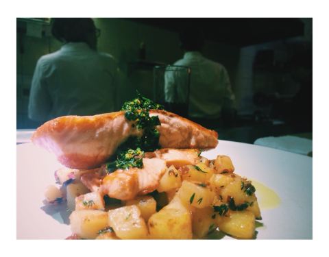 Excelente lugar, es una barra larga... buena atención y comida... Pedimos la pesca del día, sopa de pescado, queso asado y el flan de chocolate blanco, todo riquísimo !!!