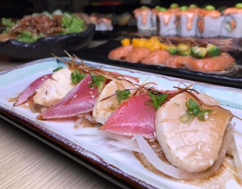 海鲜刺身做的不错,吐拿鱼片切片口感十足,烧烤牛肉,鸡排块和章鱼等很香,口味令我食欲大增