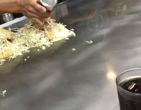 这就是广岛的铁板烧吧!味道不错,挺好吃,而且选择性还是很多的,连肥肠啦,猪耳朵啦这些东西都有,有大份小份的,整体还不错,环境吗就一般了