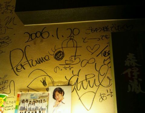 Perfumeのサインは、店を入って左手上の壁に書かれています。(色紙ではありません)