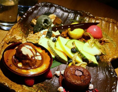 餐厅的装潢具有艺术感,有金黄色的吊灯,用木头、苔藓、石头等装饰的墙壁,主厨的厨艺也十分精湛。
