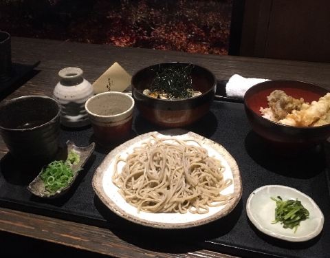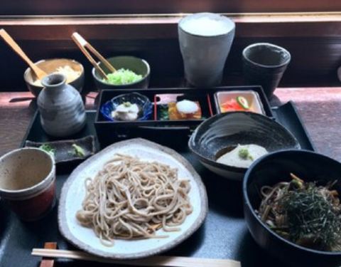 小溪旁一家吃荞麦面的店,日本人也挺多的。有热面和冷面。冷面有个碗里有生鸡蛋,日本的鸡蛋是可以生吃的,放上酱油搅拌搅拌再和面条搅拌一起吃,是一种奇特的味道。