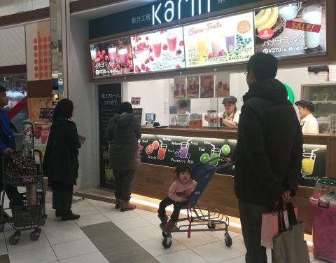 这个鲜榨果汁店在商场一楼有专柜,虽然不大,可以看到果汁现场制作过程,喝的放心,蓝莓草莓混合果汁味道不错,周末下午来这里的人还不少,一度都要排队了