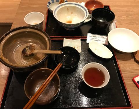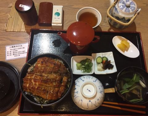 这家鳗鱼饭的店是在大众点评上搜到的,地理位置在奈良JR车站附近的三条通上,看看从车站边的酒店走过去不是很远,就立即出发过去了。 晚上7点,吃饭的人不是很多,点单后等了15分钟,鳗鱼饭才上桌,是现场烤出来的鳗鱼,鳗鱼的皮烤得有点硬,不是那种入口即化的感觉,因为白天走了一天,晚上已经很饿了,所以也就一口气吃完了这份套餐。 鳗鱼饭中规中矩的,没有名古屋与三岛吃过的鳗鱼饭好吃。