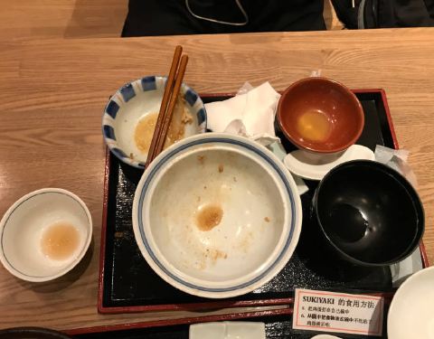 初到奈良,在酒店附近的三条町小逛了一下最后决定吃这家。坐下后马上上了茶,小朋友的是冰水,并给了有中文说明的菜单。平常就不怎么会点菜的最后点了儿童套餐、整条的红烤鳗鱼套餐和寿喜锅套餐。被我称之为儿童套餐的内容是切碎的红烤鳗鱼+海苔丝的盖饭配汤,这个套餐的饭量其实蛮大的,平常饭量小的妹子应该能吃饱。整条的烤鳗鱼套餐有配的白饭和汤、小小份的酱菜和小小的两片凤梨,白饭可以续。寿喜锅套餐也配有酱菜和水果。寿喜锅是最先上的一套,石锅很烫,用来沾的生鸡蛋被我捣散倒汤里烫了个半熟(来日本第一餐就吃生的感觉太生猛),白饭很好吃,感觉怎么都吃不够,小朋友却不怎么爱吃鳗鱼饭最后她的饭都是我吃的,吃完才发现有点过饱了。