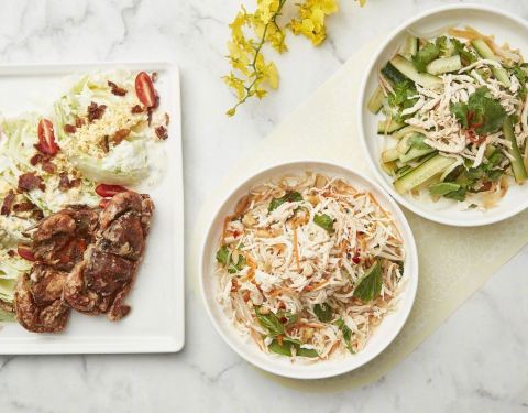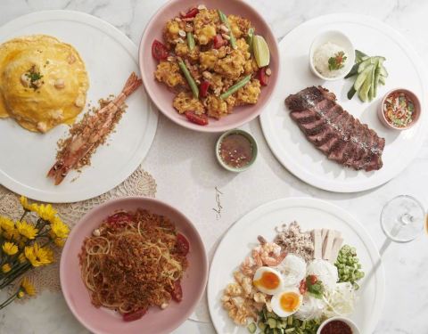Nara拼盘4种小吃组合/4种酱料里面有猪肉云吞、沙爹猪肉、虾饼和细春卷。 芒果糯米饭Q弹有嚼劲,芒果非常甜。 咖喱蟹有种鸡蛋的香味,简直就是下饭神器啊! 炸石斑鱼炸的外酥里嫩搭配上Nara的独家辣酱。 海鲜冬阴功汤,汤头非常酸劲有足,汤里大概有两三只超大的虾~