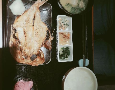 店面正对着佐世保港口,风景不错。我们点了烤鱼和炸鱼套餐,味道不错的