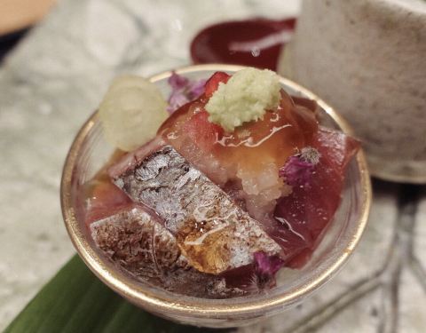 脂质少许的赤身十分柔软,微甜的酱汁及十七味中的山椒相呼应微微刺激着味蕾,让品尝这道主菜时多了一份乐趣