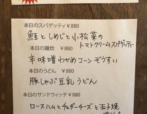 春天在人们的想象中总是一个美好开始的象征,春暖花开,和风细细…即使有点细雨纷飞,也会被形容得那样如诗如画,意境飘袅…然而今天这狂暴的风…实在是描述不出了,我只联想到…这能吹跑人的风…戴着假睫毛的美女怎么办?会不会被吹走一只呀…… 风大就被吹进了附近的咖啡西餐厅,昼食套餐+咖啡吧。没其他想法了…… 这家店很宽敞明亮…以沙发茶几为主的格调,白天带着孩子的主妇们喜欢带着孩子来,吃完可以在沙发上闲坐会儿和孩子们嬉闹会儿,虽然有些小吵,也不会有人说什么。 每天的午餐菜单…有一部分是天天更换的,虽然便宜,但是厨师还是很用心的每天在更换,尽量满足客人不同的口味和挑剔的孩子们的口味。 这里的食材都是蛮新鲜的,今天叫的的红鮭和小松菜的番茄酱意大利面。小松菜拌着番茄酱的味道,倒也有另一番滋味。午餐随便对付下了…餐前色拉餐后咖啡…都在套餐里…良心价…嘻嘻…