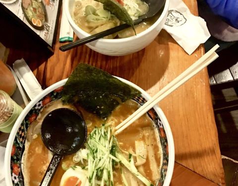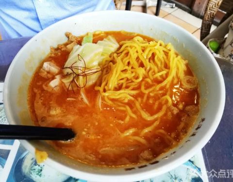 周二中午大风呼呼地,本以为非旺季应该随到随吃滴,但还是要等位15分钟没关系,我们在魔都历练过的吃货是很有耐心哒! 边等位边观察,有很多当地人也在吃他家的面,而且像是常客。 入座后点了他家的招牌面-白味噌...周二中午大风呼呼地,本以为非旺季应该随到随吃滴,但还是要等位15分钟没关系,我们在魔都历练过的吃货是很有耐心哒! 边等位边观察,有很多当地人也在吃他家的面,而且像是常客。 入座后点了他家的招牌面-白味噌、赤味噌和酱油拉面、辣味拉面+饺子! 餐桌是围着敞开式的厨房,所以厨师的制作过程都能看的清清楚楚,每份浇头都是现烧的! 面条顺滑有嚼劲,汤底口感层次丰富,有点偏咸,而且放了很多京葱丝,这点我不喜欢! ❌店门口的地面超级滑,去尝味的小伙伴们一定要注意哦!