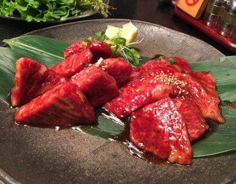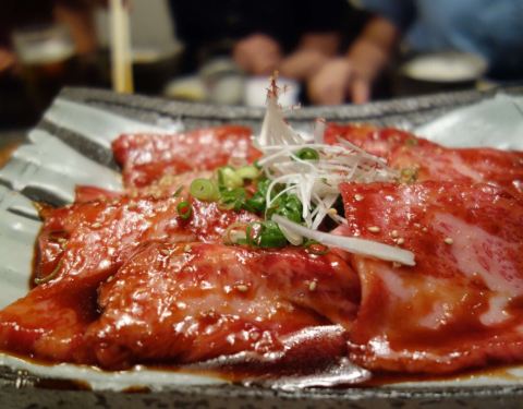 松坂牛的烧肉店。炭烤牛肉一般都是韩式烤肉。肉要提前腌制好。肉块都比较厚。松坂牛本身就是霜降牛肉。味道自然差不了,配上米饭和生菜。啤酒一杯。感觉世界美味就在这里了。