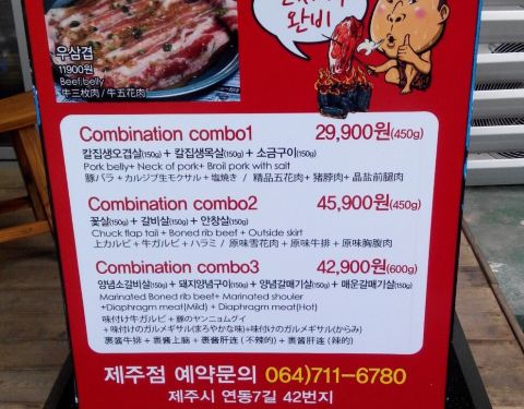 韩国著名艺人姜虎东开的烤肉店,位于济州岛著名商业街保健路上,店内有会说中文的店员。众多套餐可供选择,有五花肉、牛肉等等,鲜嫩多汁,搭配生菜一起抱着吃,口感极佳。