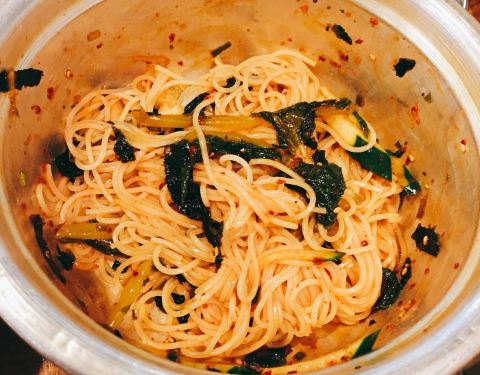 牛肉有点太贵了,只点了五花肉套餐,比较便宜,有四块大大的五花肉,油水已经很多了,要了一个韩国拌面,味道也不错,吃了四万多韩币。