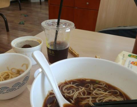 汤包是一笼六个,七块钱,吃了一碗面筋木耳面,九块。汤包还口味不错,就是汤汁多,烫嘴。面就一般般,油多