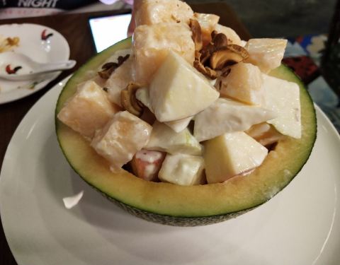 还是跟合算的 菜量也蛮大的 店堂不大 但是生意很好啊 服务员蛮忙的 所以服务上面还是有点欠缺的 一直都没给我们上小碗 说了好多次才上了 又加了一个甜品 还有推荐菜里面的粉红色的初恋 真的长的很美啊 海南鸡的鸡味道一般 但是酱汁还是不错的 而且四个人给了四份酱汁 这点很方便很贴心呢